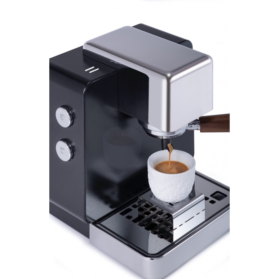 Le porte-filtre breveté avec mécanisme d'éjection permet également de retirer la dosette utilisée sans la toucher, alliant ainsi élégance, hygiène et praticité.