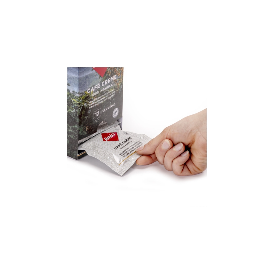 Il blend AMICI combina i migliori caffè Arabica: nove ingredienti selezionati dal Sud e Centro America, Asia e Africa. Le note di cacao e la corposità dei caffè del Sud America, l'elegante acidità e la frutta matura e lo zucchero caramellato del centro America, il gelsomino e la freschezza degli Arabica africani, e infine le note speziate e di frutta secca dei caffè asiatici.